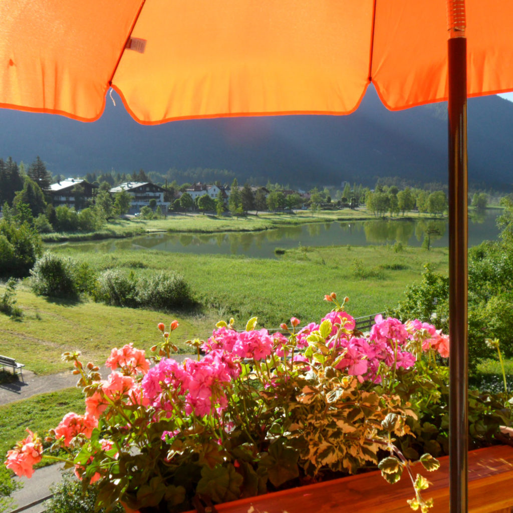 Schon morgens können Sie bei uns den Blick auf die Berge und den Wildsee geniessen! Obwohl unser Haus so ruhig und idyllisch am Waldrand liegt, sind Sie dennoch nur ca. 3 Gehminuten von der Fußgängerzone und der Haltestelle für den Schi- und Dorfshuttlebus entfernt. Unser Haus liegt direkt an der Wildseepromenade und damit am Ausgangspunkt herrlicher Spazier- und Wanderwege sowie der Nordic Walkingstrecken. Auch die Seefelder Kneippanlage ist in nur wenigen Gehminuten erreichbar, wo Sie wieder neue Energie tanken können.